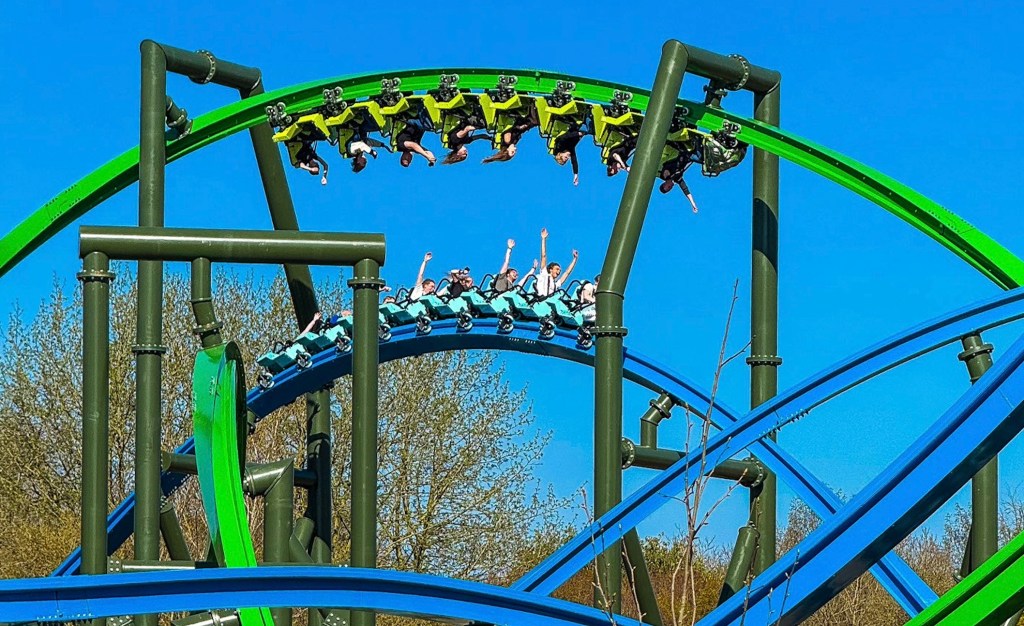 A grande novidade do Walibi Holland em 2025 é a YoY, uma montanha-russa dupla de trilho único – ou seja, não tem ninguem do seu lado!